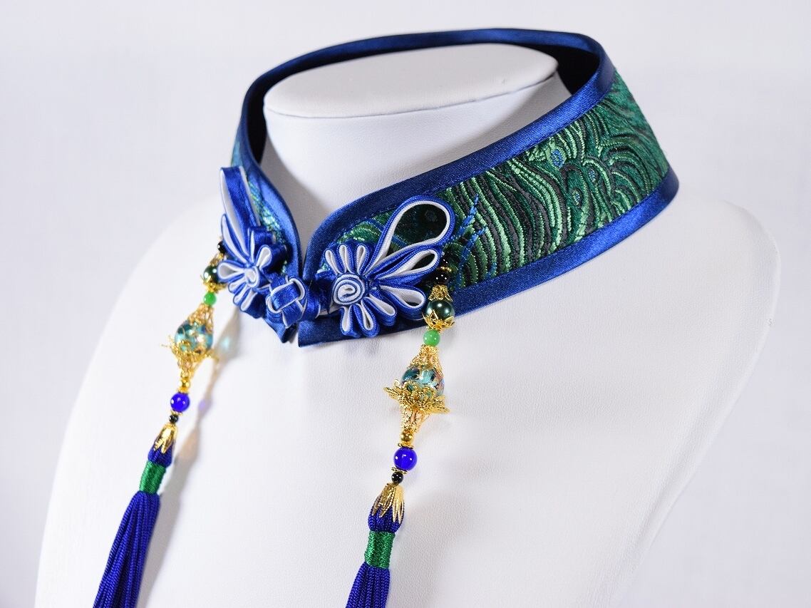 中華襟チョーカー(青孔雀)Lサイズ[AR-SC299]