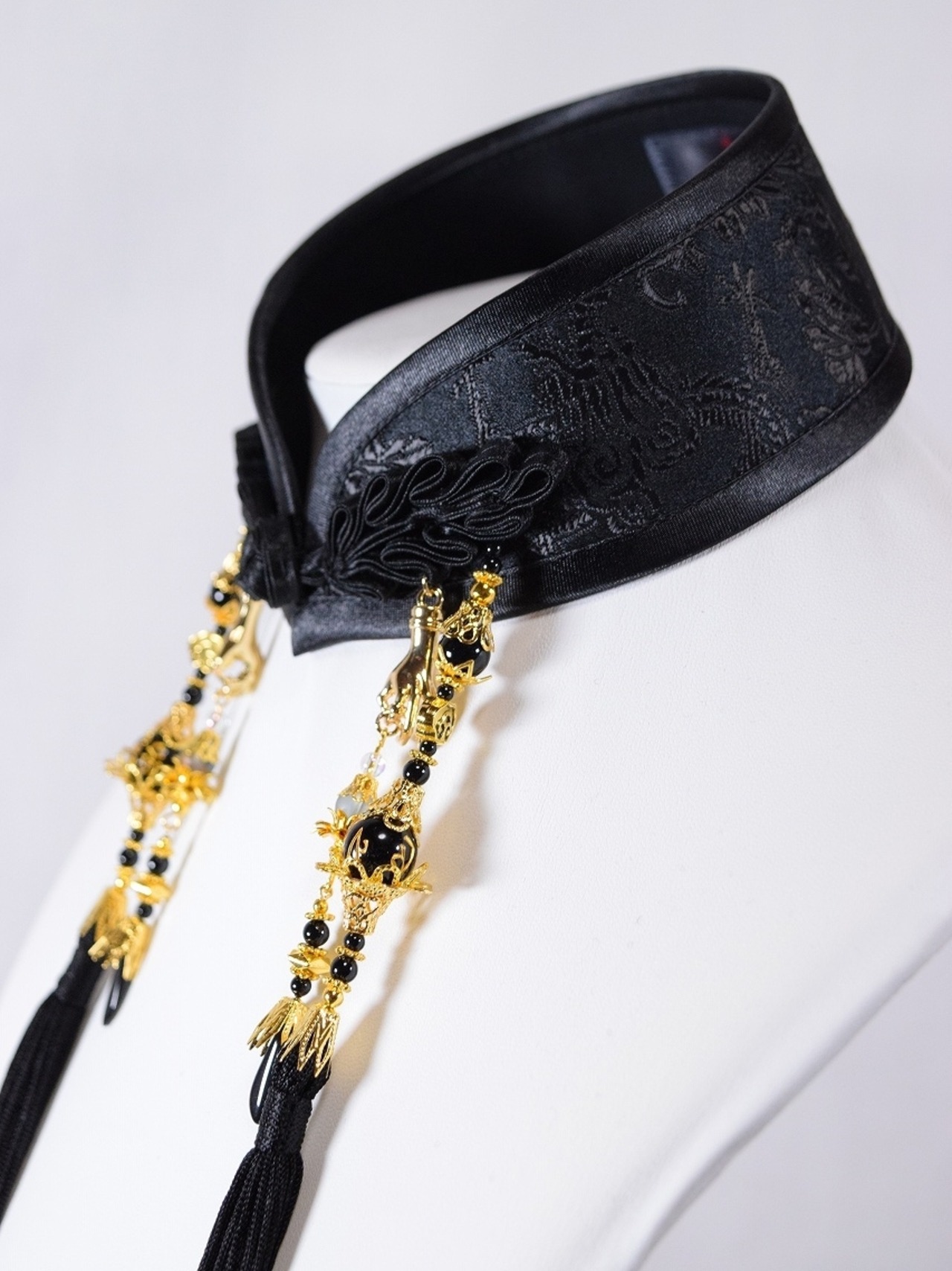 中華襟チョーカー(黒龍)Sサイズ[AR-SC330]