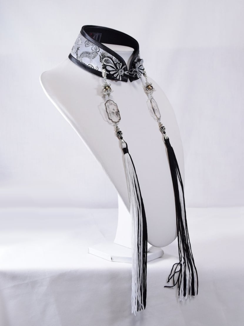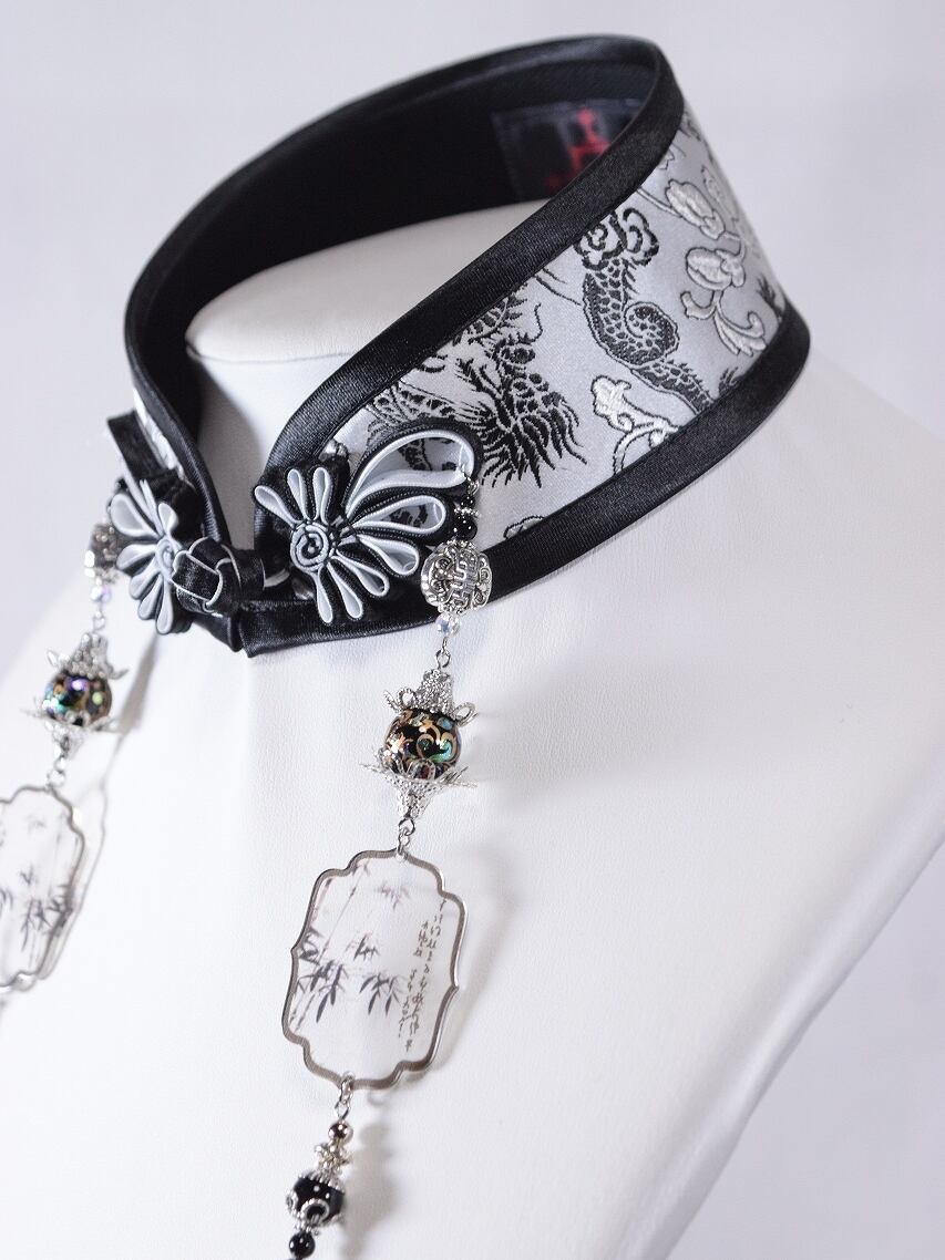 中華襟チョーカー(銀龍)Sサイズ[AR-SC333]