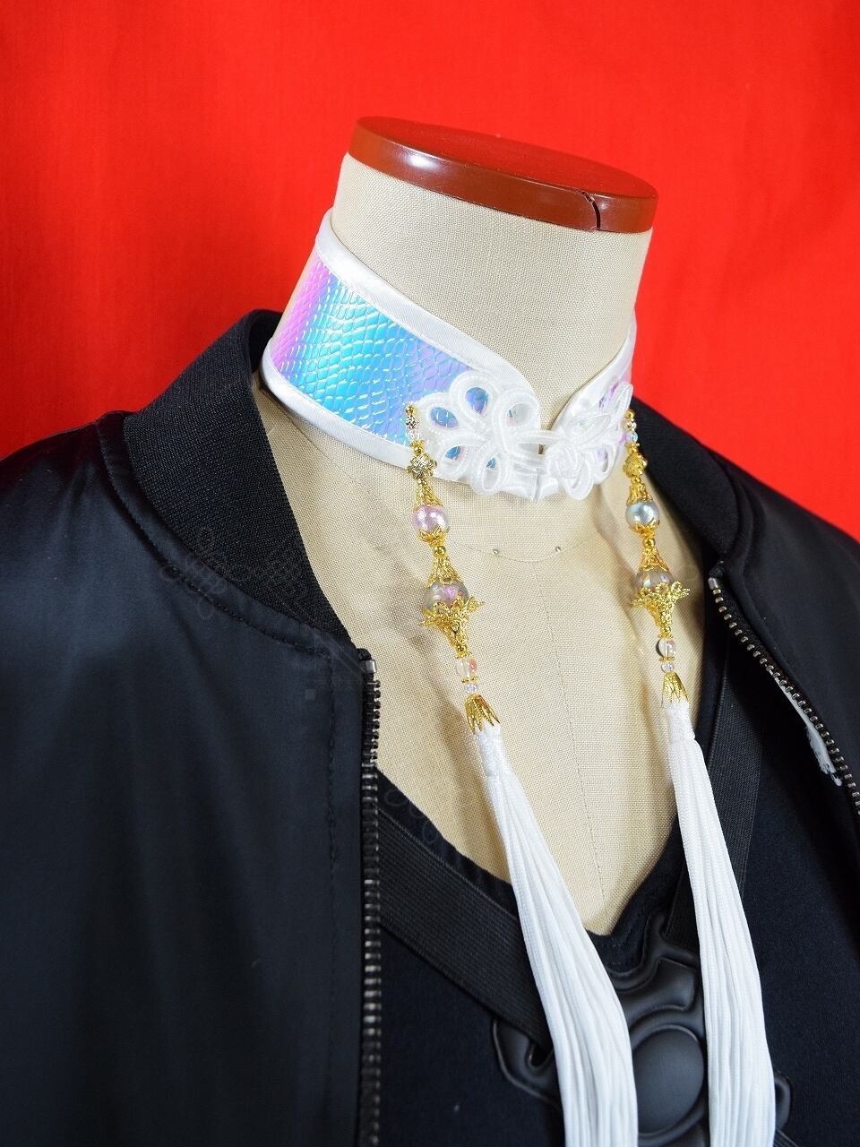 中華襟チョーカー(光蛇白)Sサイズ[AR-SFL053]